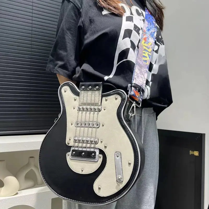 A bag that riffs on style and steals the show. Whether you're a headliner or just love a bold accent, this guitar-shaped masterpiece is always in tune with your look.
