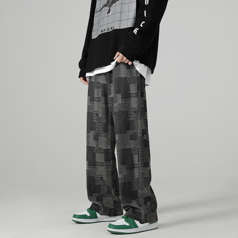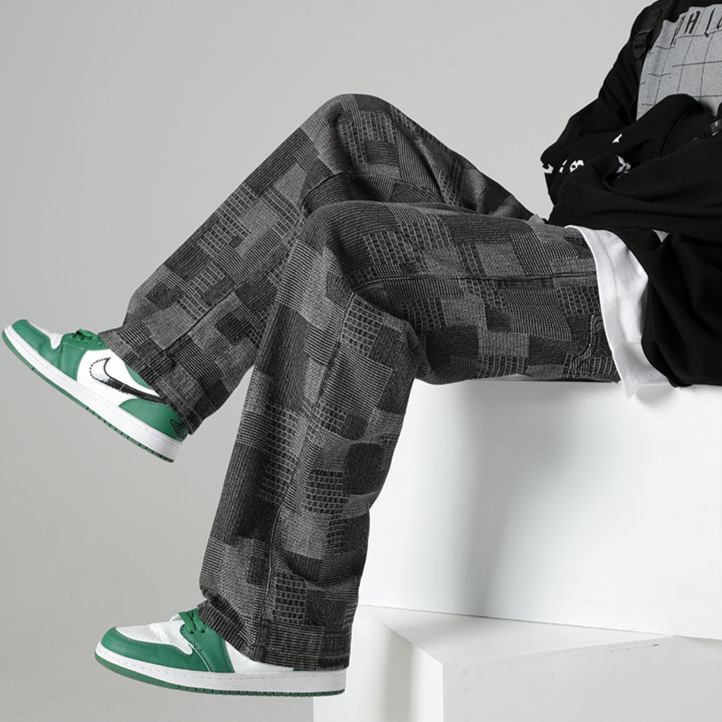 ● Relaxed straight-leg fit with all-over geometric jacquard texture