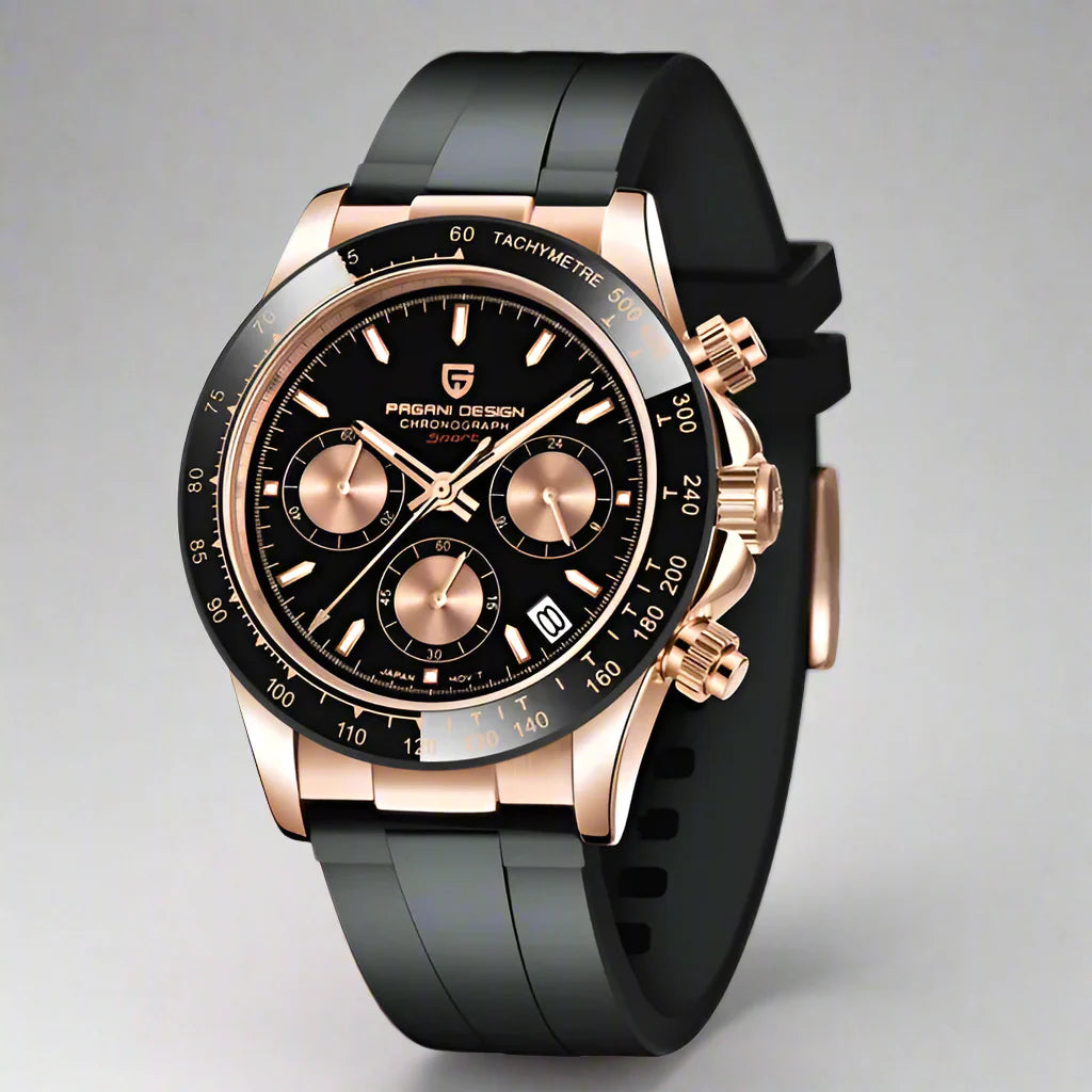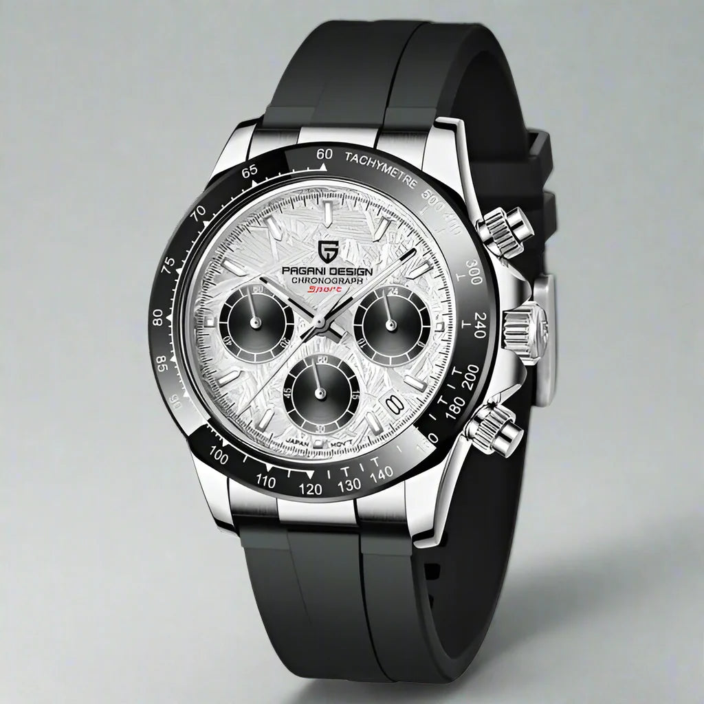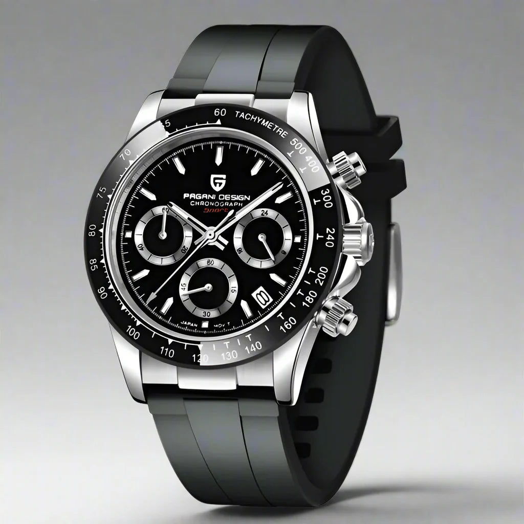 A testament to craftsmanship, this chronograph watch combines precision timekeeping with a stainless steel build and scratch-resistant sapphire glass. Designed to perform, built to last.