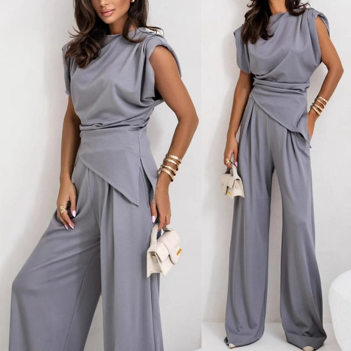 Precision in every fold. This set is all about proportion play-soft angles at the waist, a clean neckline, and trousers that fall just right. Simple, yes. But never basic.